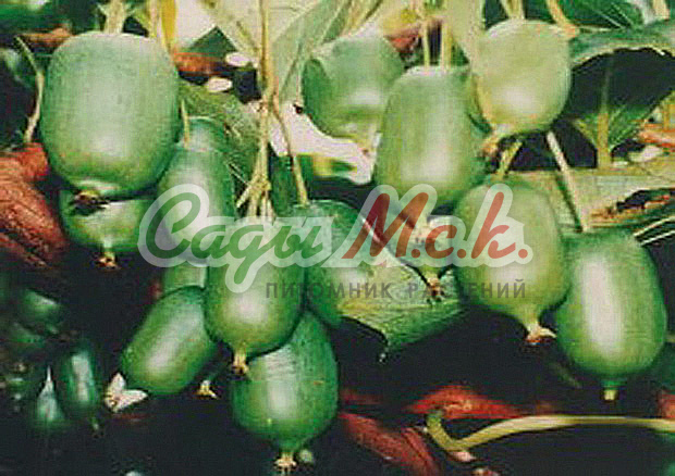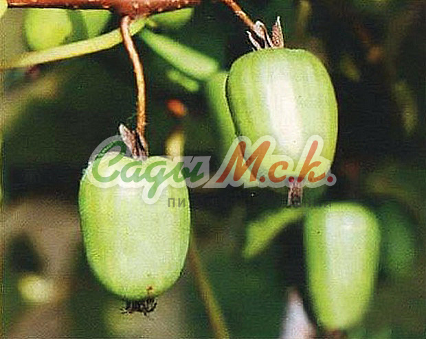 Женский десертный сорт актинидии, ранних сроков созревания ягод. Лиана средних размеров с вьющимися, неопушенными побегами. Листовые пластинки крупномеров актинидии Королева сада сердцевидные, голые, мягкие желтовато-зеленого цвета. Урожаи крупных (до 3,4 г) оливково-зеленых кисло-сладких, пахнущих ананасом ягод можно собирать, начиная с середины сентября. В среднем, с одного куста получают около 0,8 кг плодов. Сорт устойчив к разного рода инфекционным заболеваниям. Морозами повреждается в незначительной степени. Для ежегодного плодоношения необходимо соседство мужских растений.