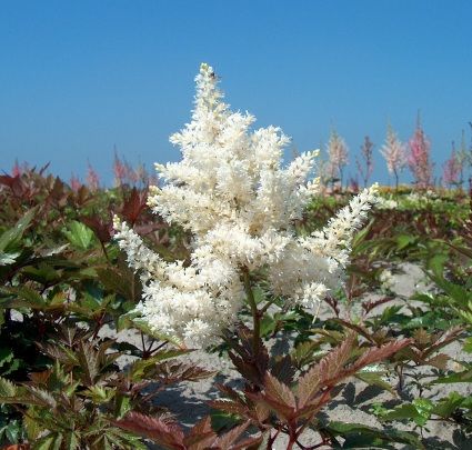 Саженцы астильбы Glаdstоnе наполняет сад нежным очарованием бело-кремовых цветков, собранных в пышные метелки. Саженцы этого сорта прекрасно выглядят в одиночных и групповых посадках. Особенно садоводы любят использовать эту астильбу для украшения клумб с хвойными кустарниками, миксбордеров и бордюров. Сорт относится к самым ранним: растение радует замечательным ароматом и чудесным видом своих соцветий уже в июне.