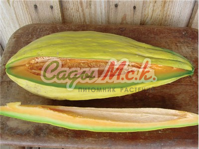 Дыня Tigger созревает через 90 дней после всходов. Плоды маленькие, диаметром до 8 см, весом 150-450 г, шаровидной формы. Кожура гладкая, темно-зеленая, при созревании - желто-оранжевая с красно-оранжевыми полосами. Мякоть белая, мягкая, с приятным ароматом.