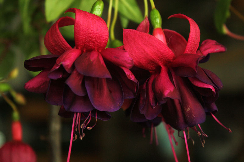 Фуксия Adalbert Bogner - кустовая форма, бутоны округлые. Очень крупные, яркие, махровые цветы. Чашелистики розово-красные, юбочка темно-баклажанная с красными мазками. Сорт-любимчик. Зацветает рано.