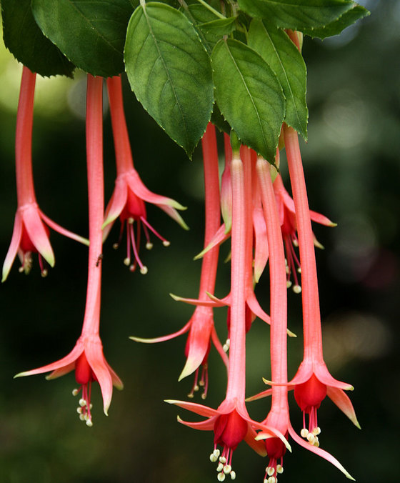 Фуксия Поур ле Меннек/Pour le Menneke - очень необычный, интересный и красивый полу ампельный сорт фуксии с компактной формой куста. Цветы этой фуксии продолговатой формы, которые могут достигать 10 см. в длину. Чашелистики розового цвета, юбочка красная. Эта не обычная редкая фуксия подходит как для кустового выращивания, так и ампельного.