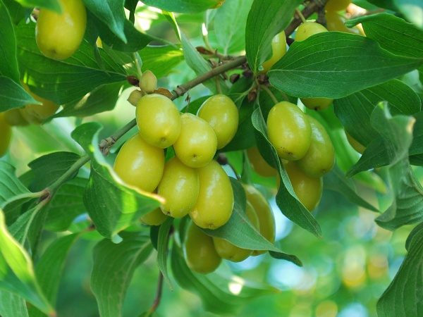Саженцы кизила Янтарный привлекают особое внимание. Плоды созревают в августе, отлично дозревают в лежке и пользуются ажиотажным спросом на рынке. Кизил имеет плоды ярко-желтого цвета, почти прозрачные в спелом состоянии, с просвечивающейся косточкой, масса которой 3,5—4 г. Благодаря тонкой кожице, ароматной и нежной мякоти кисловато-сладкого вкуса, крупномер Янтарный стал одним из самых привлекательных сортов как для переработки, так и употребления свежем виде, — изумлению потребителя нет границ, если он узнает, что янтарный компот или варенье приготовлены из кизила.