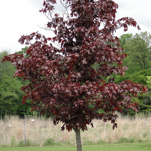 Саженцы клена остролистного Crimson King – отличный способ оформления для разных участков и территорий.Вырастает до 20 м. Для кроны характерна пышность. Листья обладают при распускании кроваво-красным оттенком, который в дальнейшем становится темно-пурпурным, а осенью – фиолетовым.Плоды-крылатки имеют красный цвет.Цветки появляются вместе с листьями, поэтому их желто-оранжевый окрас хорошо сочетается с цветом листвы.Среди плюсов стоит выделить неприхотливость клена остролистного Crimson King его быстрое разрастание, а также стойкость к засухе.