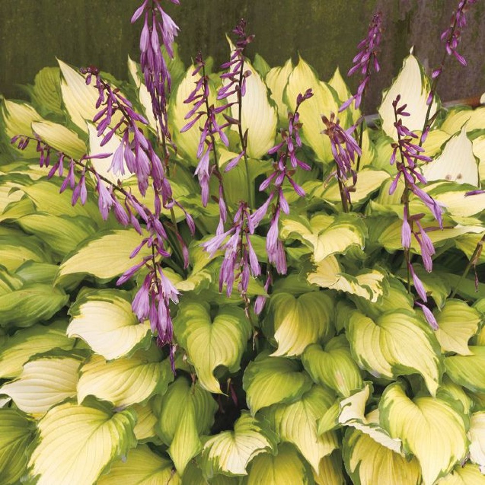 Хоста гибридная Леди Гиневера - высота куста 60 см, ширина 75 см. Листья кремово-желтые с узкой зеленой каймой, куст раскидистый. Хосты эффектны в одиночных посадках на фоне газона. Подходят для бордюров, рабаток, смешанных групп. Красивы около водоемов. Теневыносливы, но есть гибриды, способные расти под лучами солнца. На одном месте Хоста гибридная Леди Гиневера может расти более 20 лет.