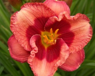 Саженцы лилейника Baby Red Eyes характеризуются своей выносливостью и красивыми цветами, которые обладают ярким розовым цветом и внутренней каймой насыщенного красного цвета. Сама форма лепестков необычная – они полые, широкие, и как бы спадают кончиками книзу. Диаметр цветка – 10 см. Крупномер Baby Red Eyes является многолетним вечнозеленым растением, и зимой зеленая листва по-прежнему сохраняется на стебле. Цветет куст в конце июня и в июле, в высоту достигает 51 см. По типу размножения – диплоид. Аромат издает весьма слабый. Сажать растение рекомендуется на открытой местности.