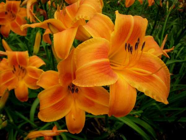 Саженцы лилейника Rocket City довольно популярные. Ярко оранжевые лепестки с бордово-оранжевым горлом и продольными полосками более темного оттенка располагаются двумя ярусами на цветке. Легкая гофрированная кайма по краям довершает это очарование. Высота цветоносов: 85 см, диаметр цветка – 15 см. Сезон цветения: ранний - средний. Плоидность: тетраплоид. Осенью листья крупномера Rocket City опадают, и растение впадает в спячку до первых весенних дней.