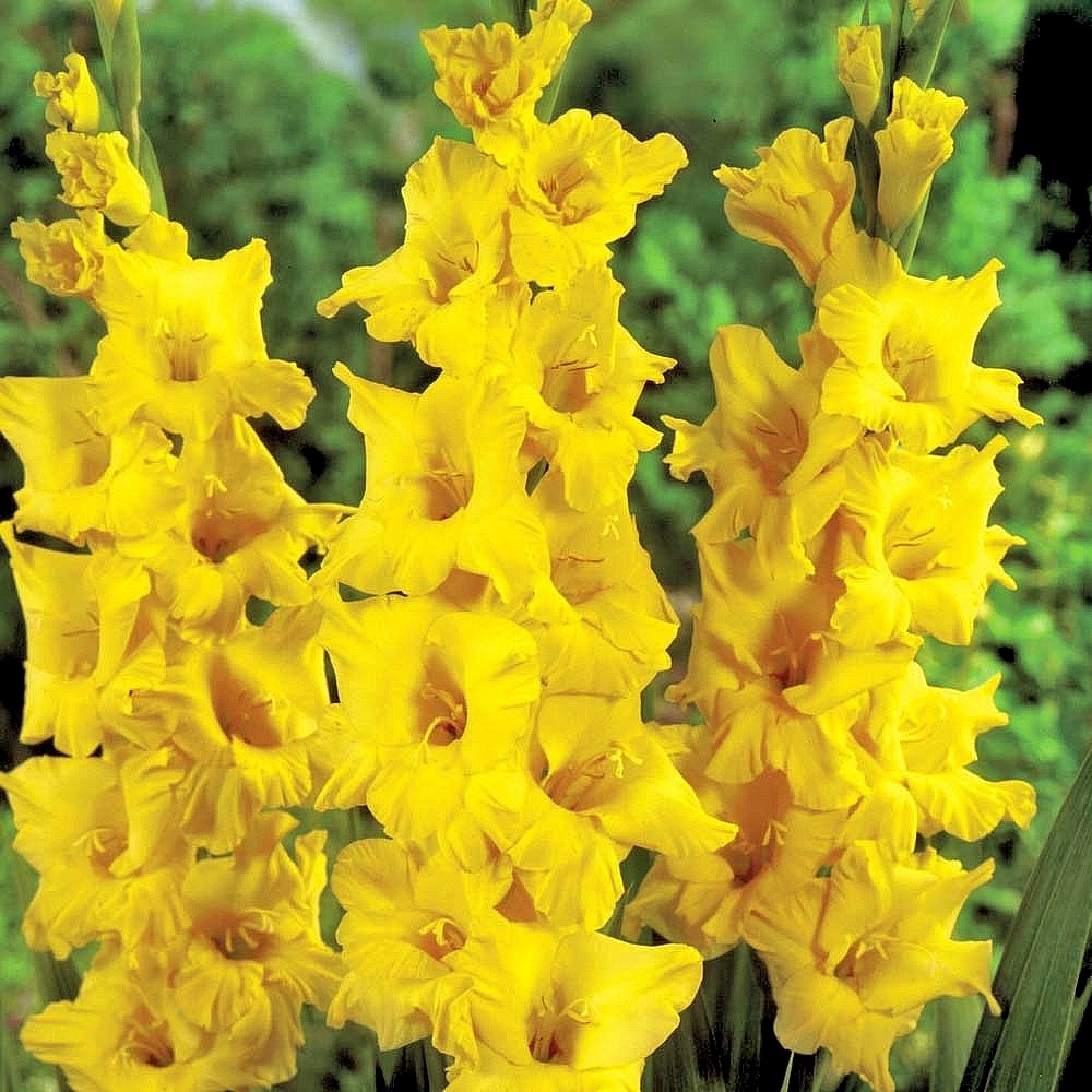 Луковицы гладиолуса крупноцветкового Лемон Дроп (Lemon Drop) – шикарный сорт с огромными воронковидными цветками ярко-жёлтого окраса. Высадите луковицы в цветник в мае, и в августе клумба озарится солнечным блеском. Цветущие гладиолусы сохраняют декоративность на протяжении 2 или 3 недель, хорошо стоят в букете. Высота Гладиолуса крупноцветкового Лемон Дроп 110 сантиметров, длина цветоноса 50 сантиметров. Стебель нуждается в подвязке к опоре. В компанию к гладиолусу этого сорта высаживают растения с белоснежными, фиолетовыми, лиловыми или малиновыми цветками.
