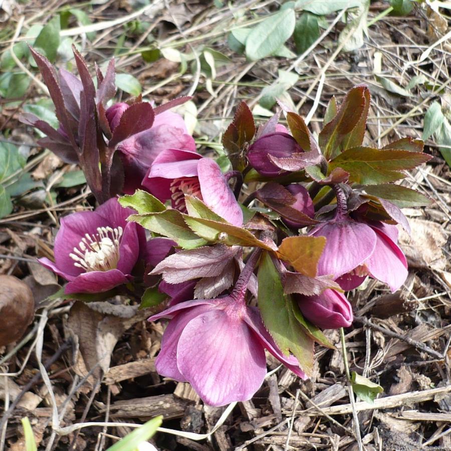 Морозник Early Purple - многолетнее, вечнозеленое, травянистое растение. Цветки обычно появляются в кластерах (1-4) на толстых стеблях, возвишающихся над землей. Цветки розоподобные, большие, чашеобразные. В их центре хорошо заметны контрастные желтые тычинки. Окрас лепестков разнообразный, начиная от белого до розового и светло-фиолетового. Листья темно-зеленые, глянцевые, кожистые. Цветет этот сорт с конца зими. Высота растения - 25 - 40 см.