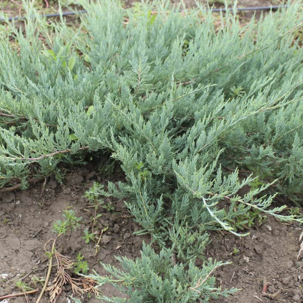 Можжевельник Hughes - почвопокровный хвойный кустарник с приподнятыми побегами, вначале имеет подушковидную крону, потом разрастается. Высота растения не превышает 0,4м. Диаметр кроны около 2м. Хвоя чешуйчатая, серебристо-зеленая, мягкая, к зиме приобретает фиолетовый оттенок.