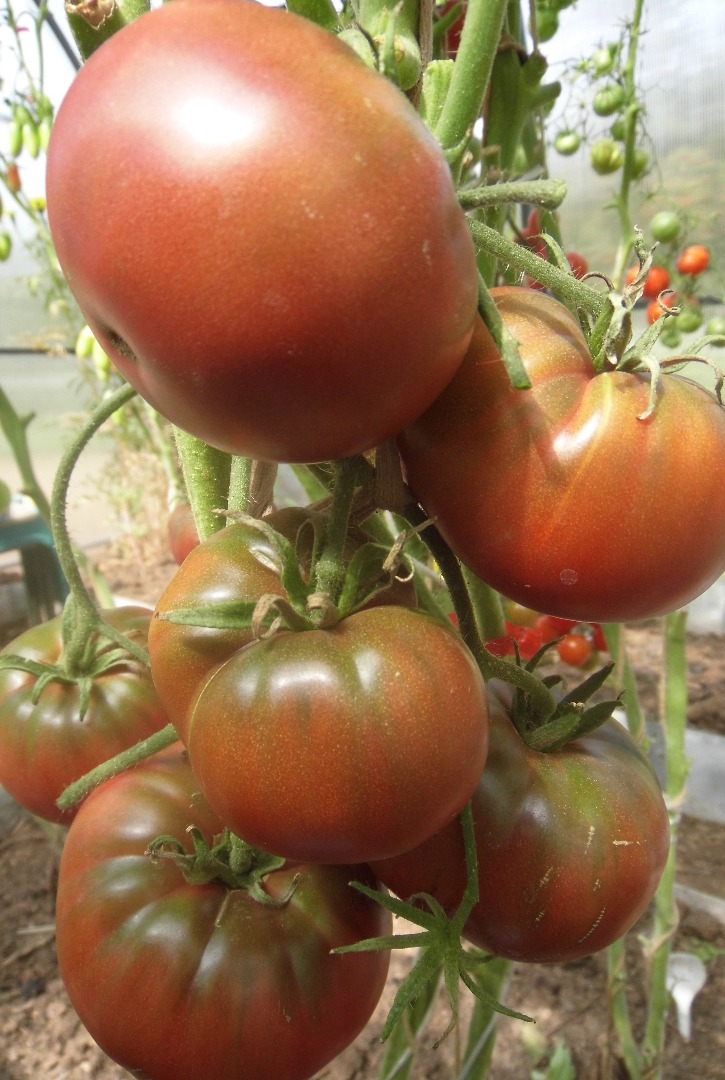 Помидор Black Giant - сорт среднего срока созревания. Высота взрослого растения - 1,3 м. Плоды плоскоокруглой формы, фиолетово-коричневой окраски, массой до 350 г. Мякоть мясистая, обладает превосходными вкусовыми качествами.