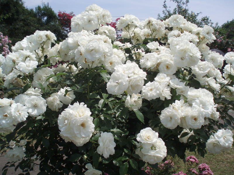 Роза Iceberg - цветки махровые, 7 см в диаметре, вначале бокаловидные, позднее чашевидные. Чаще всего они белоснежные, может проявляться розовый оттенок. Роза зацветает ранним летом и продолжает цветение доморозов. Листва блестящая, светло-зеленая. Куст прямостоячий, ветвистый, довольно округлый. Цветки долго стоят в срезке. Сорт устойчив к болезням.