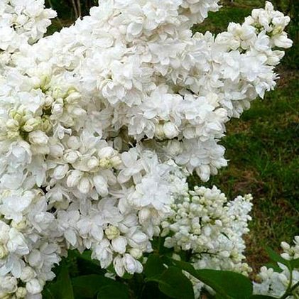 Один из лучших белых махровых сортов сирени. Цветёт обильно и продолжительно, в средние сроки. Цветки чисто-белые, крупные, диаметром 3 см, густомахровые (из 3-4-х венчиков), с нежным ароматом. Лепестки с приподнятыми краями и загнутыми кончиками. Соцветия крупные, плотные, из 2-3 пар метёлок 18 - 20 см. Сирень морозостойкая. Хорошо переносит обрезку.