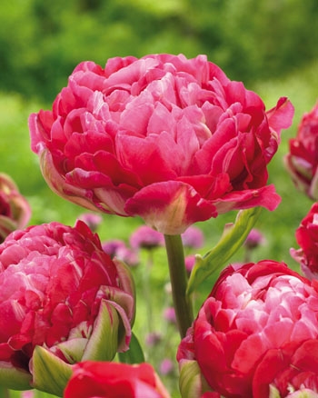 Тюльпан Up Pink относится к махровым поздним сортам. Цветет в начале мая, образует крупный махровый нежно-розовый с молочными штрихами по краям высотой 6 см. В раскрытом виде цветок достигает в диаметре 9-11 см, обладает легким сладким запахом. Продолжительность цветения - до 2-3 недель. Сорт отлично растет на хорошо освещенном месте и в полутени. Цветок возвышается на крепком стебле высотой 40 см.