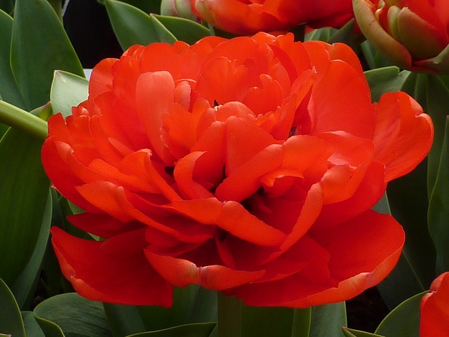 Тюльпан Miranda - пышный густомахровый (многолепестковый) сорт. Цветок пионовидный с однотонными, насыщенно-красными, слегка заокругленными внутрь лепестками. Высота взрослого растения варьируется от 40 до 60 см. Стебли и листья изысканно-зеленые. Сорт неприхотлив к месту. Отлично растет на солнце, полутени и в тени. Цветет поздно.